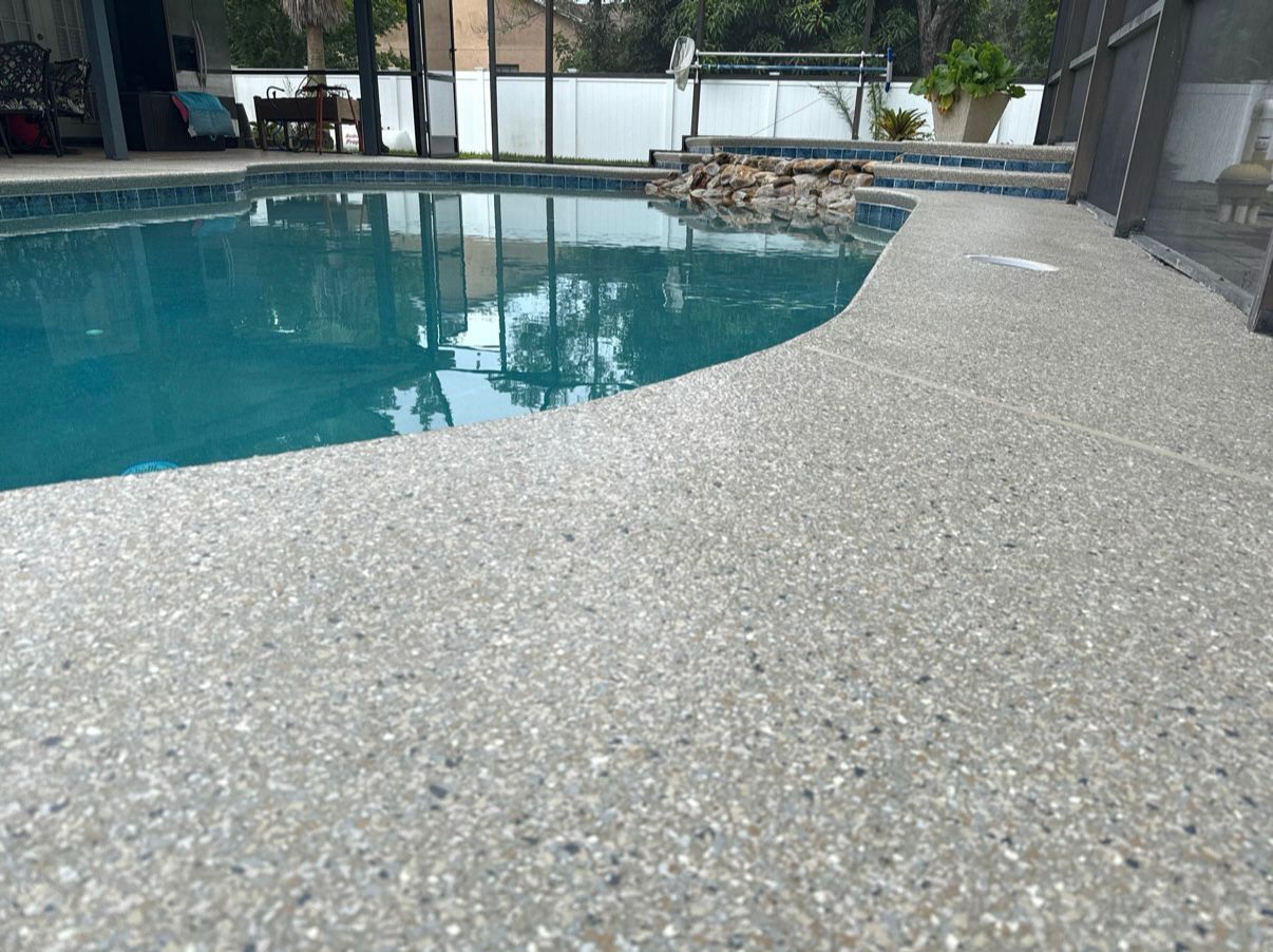 At Florida Concrete Coating, we install pool deck coatings that improve safety, reduce surface heat, and refresh the overall look of your outdoor space. Our systems are designed to handle constant sun exposure, water, and foot traffic without breaking down.